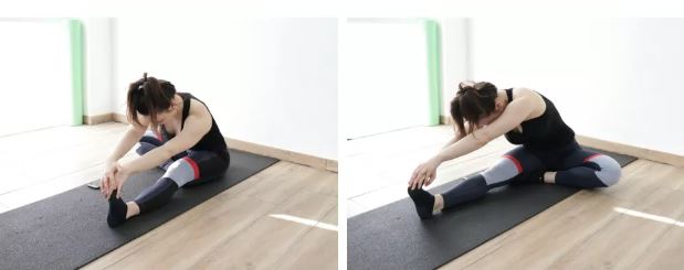 - Incline forward and go after your right foot. In the event that you can't arrive at it yet, simply incline as far forward as you can.